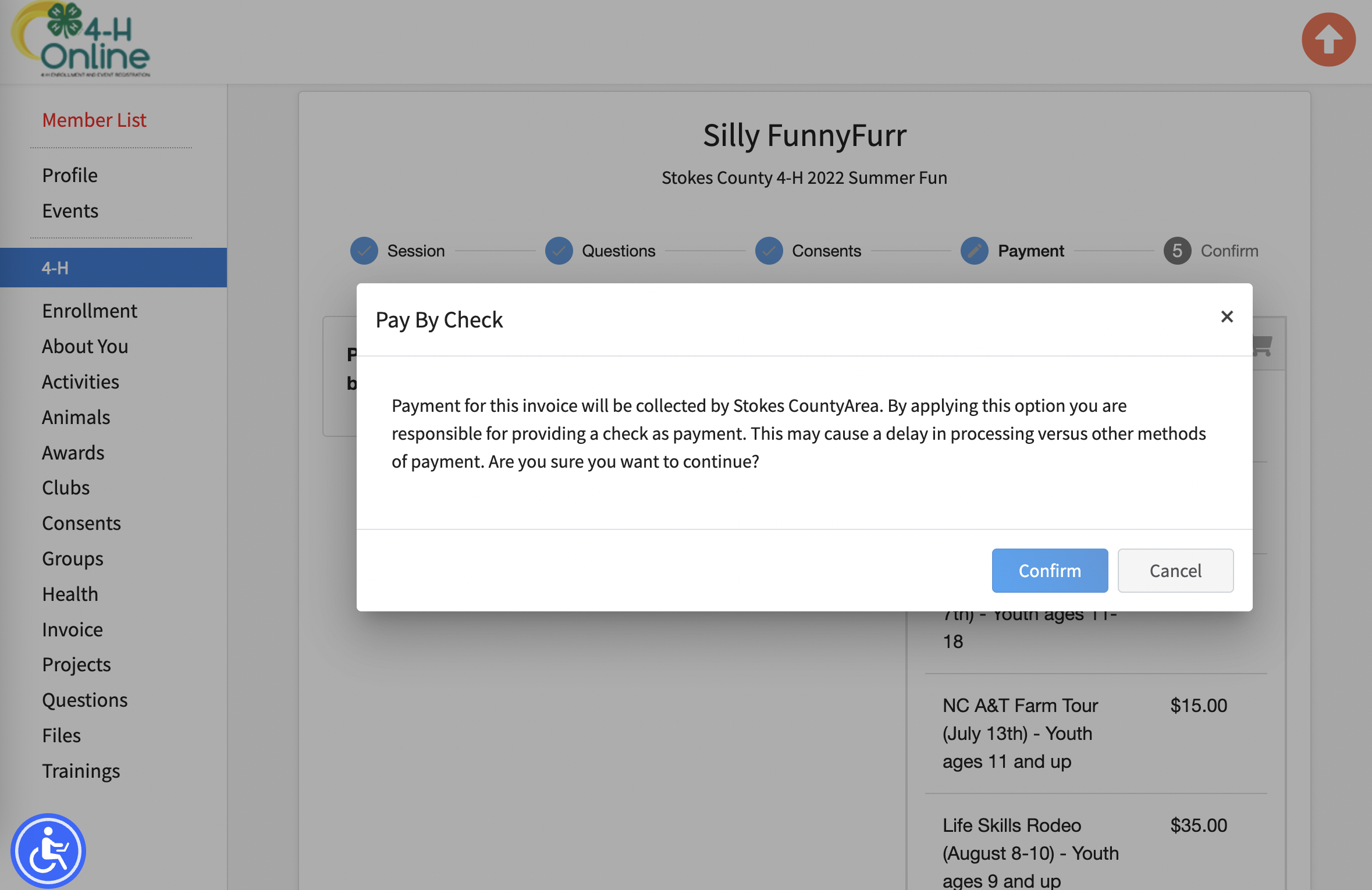 6. Then, you will confirm that you will be submitting payment via check (or cash).